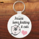 Gato adorável brincando com fio em chaveiro personalizado perfeito para tricotadores de gatos amantes.