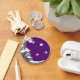 Classic Art Deco moon and stars design in brushed metallic silver, with an enamel look, deep amethyst purple background