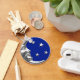 Arte Clássica Lua e estrelas design em prata metálica escovada, com um olhar esmalte, fundo azul de cobalto profundo