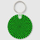 Um design de estilo Op Art circular, com dois tons, que é composto por círculos de raios, cada um deles deslocado para criar um padrão alternado.