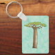 Design apresenta grande baobá, proeminente na África e na Austrália, sobre fundo aqua manchado com aqua aquarela/pontos dourados