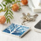 Tema de inverno azul e pintura em aquarela branca de uma árvore de bétula branca com fundo de neve. Arte original artística com tema de Natal. Natal azul e branco.