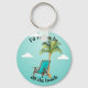 Bonito cadeira de praia e arte palmeira em um fundo verde de turquesa/espuma marinha. Modelo de texto opcional diz que eu preferencialmente na praia. Crie sua própria cadeia de chaves do tema da praia, alterando o texto se desejar.