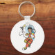 Uma astronauta menina de terno segurando um foguete. Esta design parece realmente eficaz nestes Chaveiro