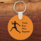 Uma corrente de chave laranja redonda com um gráfico de um atleta grego em funcionamento com as palavras "Comboio. Corra. Ganhe. Repita." Definitivamente a fórmula de vitória universal para qualquer corredor, ou desportista, por acaso.