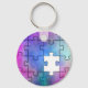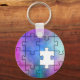 Corrente quebra-cabeça arco-íris com cores pastéis de vermelho, amarelo, verde, azul e violeta. Esta cadeia de teclas tem um pedaço do quebra-cabeça ausente.O arco-íris simboliza um novo começo. Comprar a minha corrente de chaves de peças ausente do autismo hoje.