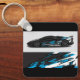 Este chaveiro é mostrado em uma cor preta com um design de impressão de carro de corrida automática. Imagem do stock vecteezy.com