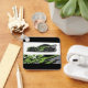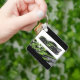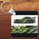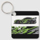 Este chaveiro é mostrado em uma cor preta com um design de impressão de carro de corrida automática. Imagem do stock vecteezy.com