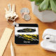 Este chaveiro é mostrado em uma cor preta com um design de impressão de carro de corrida automática com um nome de exemplo personalizado. Personalize este item e altere o nome do exemplo para o seu. Imagem do stock vecteezy.com
