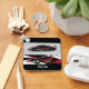Este chaveiro é mostrado em uma cor preta com um design de impressão de carro de corrida automática com um nome de exemplo personalizado. Personalize este item e altere o nome do exemplo para o seu. Imagem do stock vecteezy.com