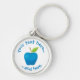 Maçã azul com ícone de folha. Dois campos de texto personalizados em círculo.