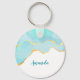 Uma corrente chave com um design de verão sereno. Turquesa / aqua imagem aqua verde aquosa com uma borda de ouro ondulada. Elegante e adorável.