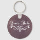 Chaveiro baba de bunco com inscrição branca e couro roxo