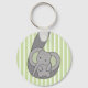 Elefante-bebê-cinza com Xadrez verde sendo borrado pela mãe em fundo verde e branco riscado