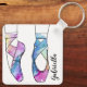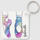 Chaveiro ao quadrado com os calçados clássicos de pontas de bailarina em um impressão colorido de água com pinks, purles, blues, verdes e muito mais em ambos os lados. Um presente encantador para dançarinos balés ou amantes balés, este design mantém a elegância dos calçados em frente e no centro. Personalize com um nome para torná-lo exclusivamente seu.