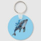 trabalho de arte de tinta e aquarela tradicionais de uma grande baleia-jubarte azul nadando ao longo de um chaveiro de botão azul