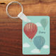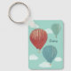 Este chaveiro apresenta as minhas ilustrações pintadas de balões de ar quente com representações realistas de balões em vermelho, azul e verde juntamente com nuvens brancas colocadas contra um céu azul claro. Este chaveiro está pronto para ser personalizado com a sua própria mensagem personalizada.