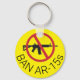 Chaveiro de mensagem de controle de arma com logotipo de proibição universal com silhueta de rifle de assalto e texto personalizável de "Ban AR-15s" em fundo amarelo.