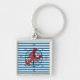 O anel-chave horizontal azul-claro e branco com tema oceânico náutico apresenta lagosta e bússola de navio!