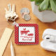 A chaveiro do campo apresenta silhuetas de animais fazendas (vaca, galinha, porco) com preenchimento de bandana vermelha