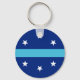 Chaveiro com a bandeira de Anaheim, Califórnia. Uma bandeira azul com seis estrelas brancas e uma faixa de azure