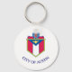 Chaveiro com a bandeira de Austin, Texas. Bandeira branca com casaco de armas da cidade no centro