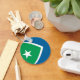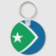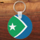 Chaveiro com um design com design com a bandeira de Cedar Rapids, Iowa. Uma bandeira verde e azul com uma estrela branca