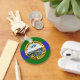 Chaveiro com a bandeira de Chattanooga, Tennessee. Uma bandeira verde e azul com o selo da cidade no centro