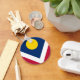 Chaveiro com a bandeira de Denver, Colorado. Uma bandeira azul, vermelha e branca com um sol amarelo