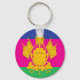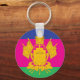 Chaveiro de botões com bandeira de Krasnodar Krai, bandeira com tricolor de azul, roxo e verde, com casaco ouro de braços no centro