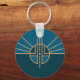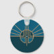 Chaveiro com um design com a bandeira de Lincoln, Nebraska. Uma bandeira azul e amarela