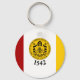Chaveiro com uma bandeira de San Diego, Califórnia. Uma bandeira vermelha, branca e amarela com o selo da cidade no centro