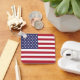 Bandeira americana patriótica, vermelha, branca e design azul.