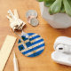 A bandeira da Grécia é feita para parecer envelhecida e robusta. Texturas grosseiras cobrir a bandeira dando a este chaveiro uma sensação precipitada. Essa bandeira grega esfarrapada é uma maneira divertida e na moda para mostrar seu patriotismo.