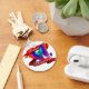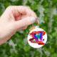 Desenho original de Sandra Gale de uma borboleta feita de pedaços de quebra-cabeça e colorida em tons de arco-íris, cercada por uma faixa vermelha. Este é um design excelente para a Consciência do Autismo, especialmente para o mês de abril, que é o mês de Consciência do Autismo.
