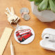 Um ônibus vermelho de dois andares na rua. Esta design parece realmente eficaz nesta Chaveiro