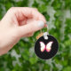 chaveiro preto básico com uma borboleta rosa brilhante.