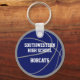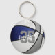 Este legal chaveiro do tema de basquete apresenta a imagem realista de uma bola de basquete que tem painéis coloridos azuis, brancos e cinzas alternados na frente e uma simples forma azul de basquete no verso - personalize facilmente com o nome do jogador & número de camisa na frente e na escola ou nome do clube e nome do mascote no verso - por katz_d_zynes