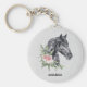 Uma corrente chave com uma bela ilustração de uma cabeça de cavalo preto com um rico de embelezamento floral perto do pescoço. Pintura de animais elegante e elegante.
