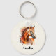 Chaveiro com uma bela ilustração. Cabeça e corpo superior de um cavalo castanho de cobre castanho. Com manchas de aquarela atrás.