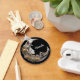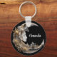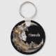 Um chaveiro com uma bela ilustração. Um rosto feminino na lua rodeado de flores.