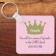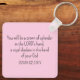 Esta bela chaveiro apresenta uma coroa com um nome personalizável e um verso Bíblia É um maravilhoso lembrete de como somos especiais a Deus.