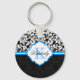Elegant Black White Blue Accents Vintage Floral Damasks. Custom Monogram