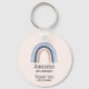 Um chaveiro com um arco-íris giro e caprichoso. Aquarelas azuis e de pêssego.