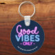 Boas Víblias Apenas Neon Sinal, Trendy Custom chaveiro. Diversão e design positiva com um sinal de neon com o ditado "Belas Víblias Apenas". Muito estilo retrô dos anos 80. O texto abaixo é personalizável. Exclua o texto se você não quiser uma versão personalizada.