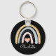 Cozinha d'água do Boho Personalizada Arco-Íris com corações na corrente-chave do garoto negro. O estilo de Trendy Boho para o dia a dia. Adicione seu nome nesta fonte de script de estilo manuscrito bonito e moderno.
