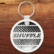 Design de dança iônica de uma bola de prata com a palavra "Shuffle" em chaveiros para dançarinos de embaralhamento, flautistas, amantes de embaralhamento Melbourne e todos que amam embaralhar.