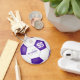Este chaveiro de futebol personalizado apresenta uma bola de futebol clássica com painéis roxos e brancos - personalize o nome do jogador, o monograma e o número de camisa - de katz_d_zynes