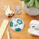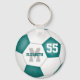 Este chaveiro de futebol feminino apresenta uma bola de futebol tradicional com painéis brancos e teais - os painéis de chá são misturados com um padrão caleidoscópico floral, feminino - personalize o nome do jogador, o monograma e o número de camisa - por katz_d_zynes