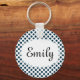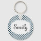 Chaveiro branco bonito personalizado com bolinhas azuis marinhos. Adicione seu nome ou iniciais / monograma para torná-lo seu.